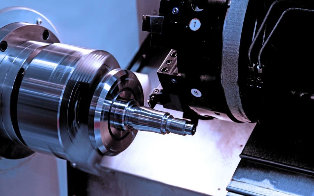Foto di un tornio che lavora un pezzo metallico